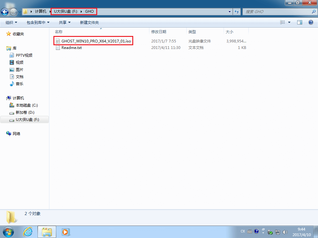 复制win10系统iso镜像包到u盘GHO文件夹内完成
