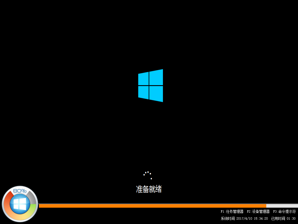 5、数据还原之后,自动重启,进入系统安装界面;