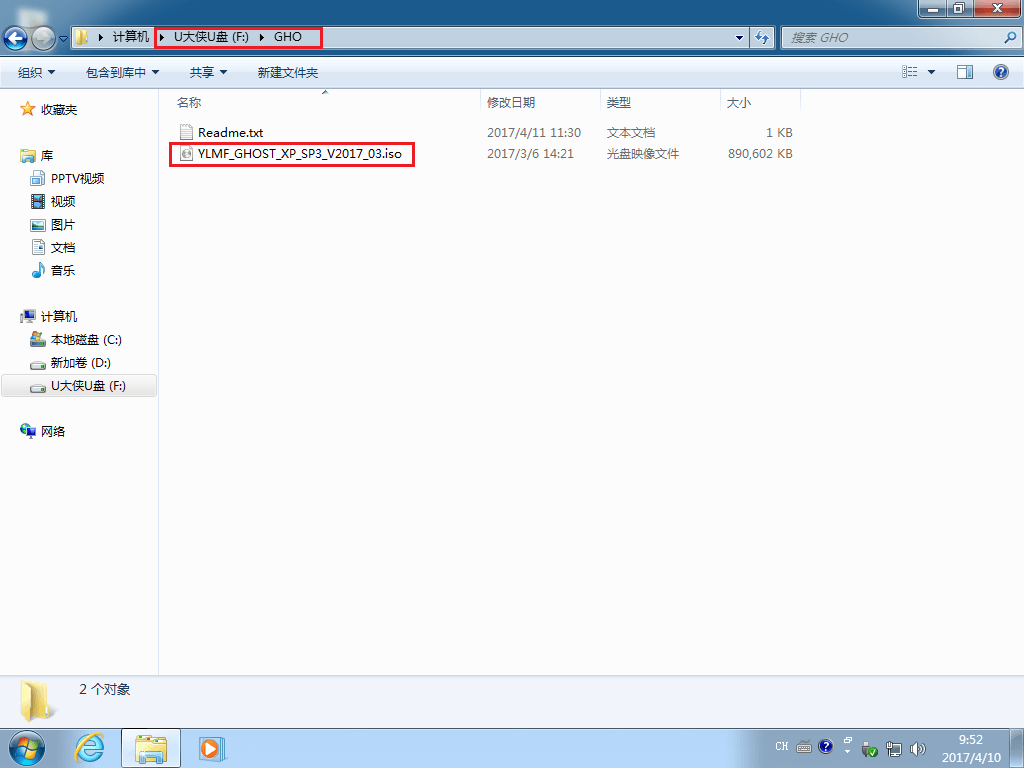 复制winXP系统iso镜像包到u盘GHO文件夹内完成